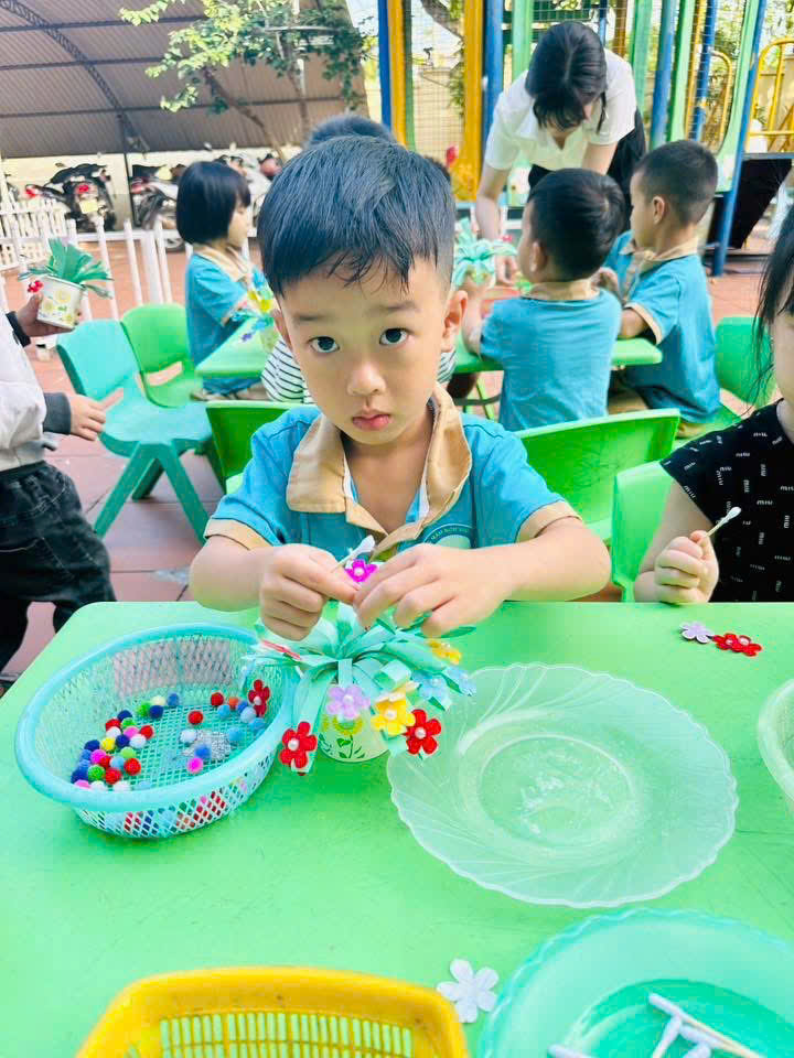 Hôm nay, Trường MN Vĩnh Thực tổ chức chương trình: “Quà tặng yêu thương 20/10” để các con có thể dành tặng những điều đẹp đẽ ,ấm áp và đáng yêu nhất đến những người phụ nữ quanh mình là những tấm thiệp , bó hoa, … những sản phẩm nghệ thuật do chính tay các con làm đầy yêu thương và cảm xúc