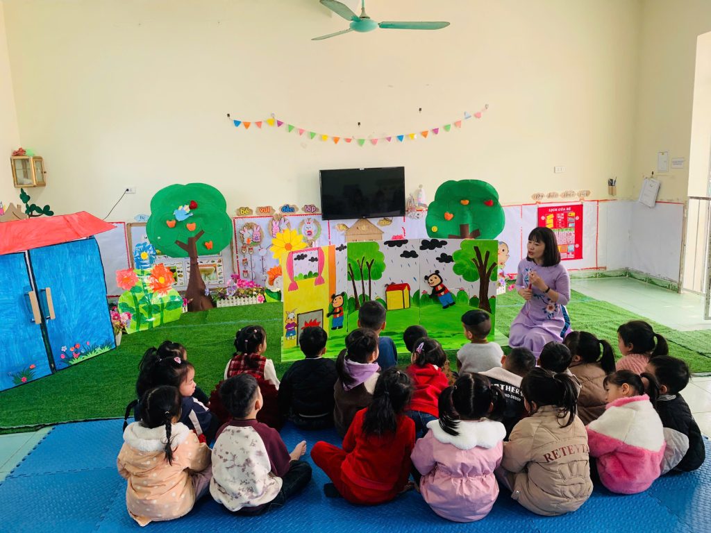 Thông qua hoạt động kể chuyện cho các bé lớp mẫu giáo 3 tuổiA1 giáo viên dùng ngôn ngữ của mình để kể lại nội dung tác phẩm để trẻ có thể hiểu đồng thời sử dụng các yếu tố phi ngôn ngữ như nét mặt, cử chỉ, điệu bộ,sử dụng các tranh ảnh sinh động để thu hút sự chú ý của trẻ và dùng các câu hỏi để gợi mở về nội dung, ý nghĩa, nhân vật trong câu chuyện, thông qua các câu hỏi này sẽ giúp trẻ phát triển về tư duy, trí nhớ. Việc trả lời câu hỏi giúp trẻ phát triển về khả năng diễn đạt, nói lên suy nghĩ của mình, phát triển vốn từ cho trẻ.